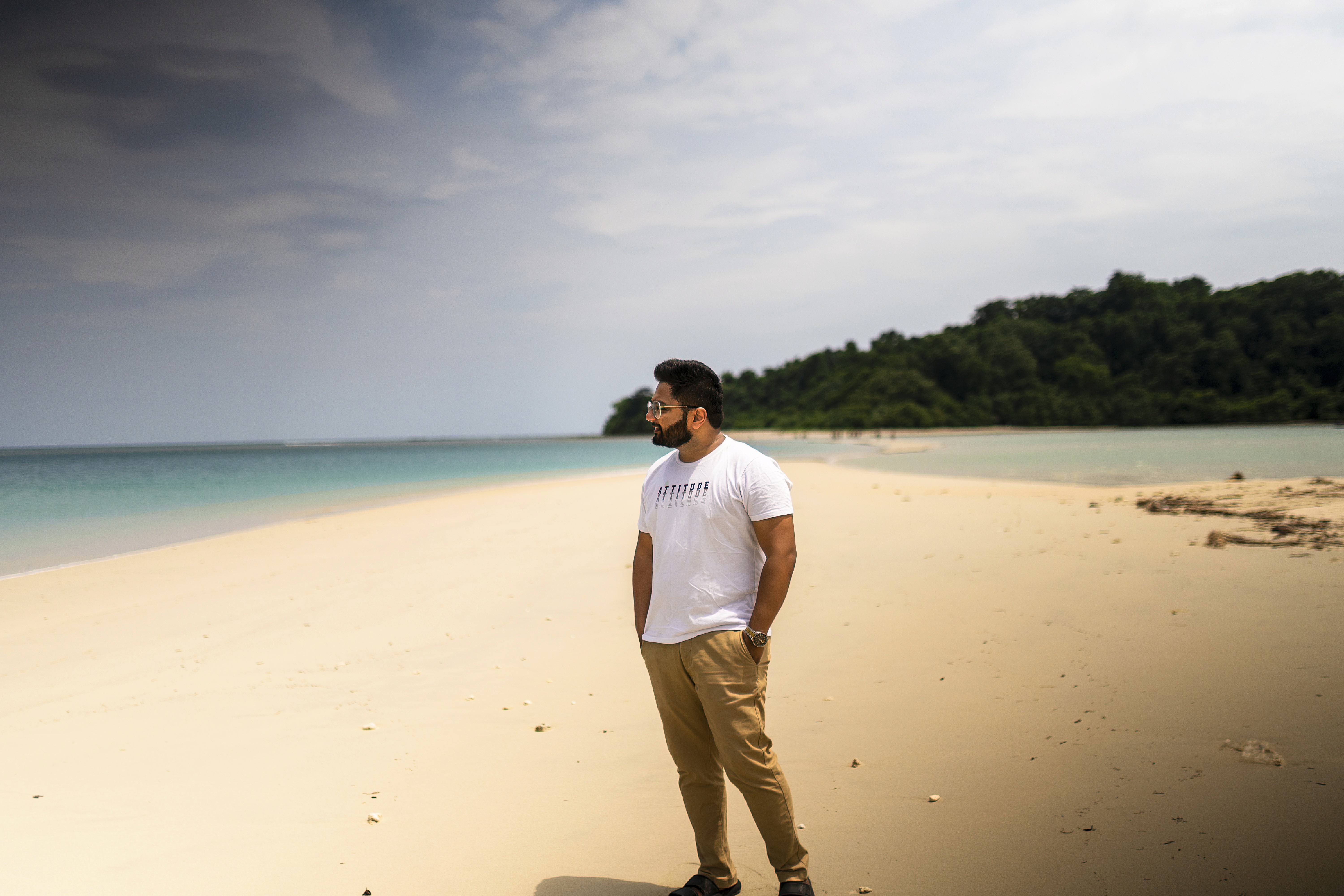 A candid moment of calm confidence, captured against the untouched shores of Ross and Smith Island